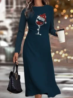Women’s Work Dress Casual Dress Swing Dress Fashion Winter Dress Christmas Daily Midi Dress Print Crew Neck Long Sleeve Santa Claus Snowman Regular Fit Wine Navy Blue Blue Fall Winter S M L XL XXL